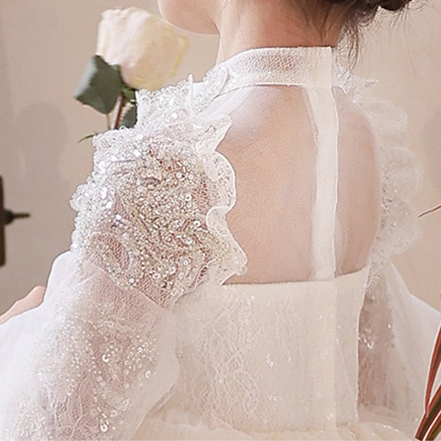 Gender: Girls', Kid's, Style: Elegant, Beautiful, Occasion: Performance, Wedding, Party, Birthday, Kids Apparel: Princess Dress, Fabric: Cotton Blend, Pattern: Solid Color, Sleeve Length: Long Sleeve, Design: Mesh, Age: 4 years+, Season: Summer, Spring, Look After Me: Wet and Dry Cleaning, Washable, Length [Dress] (cm): 4 Years(110cm):83;4-5 Years(120cm):93;5-6 Years(130cm):103;7-8 Years(140cm):113;9-10 Years(150cm):123;11-12 Years(160cm):133, Fit Type: Regular Fit, Dress Length (cm): Maxi, Function: Comfort, Neckline: Standing Collar,