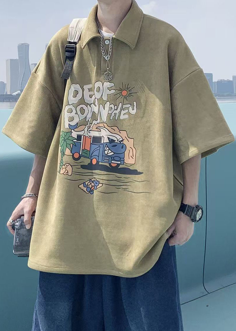Print Shirts Vintage Summer Green Button Polo Cotton Mens