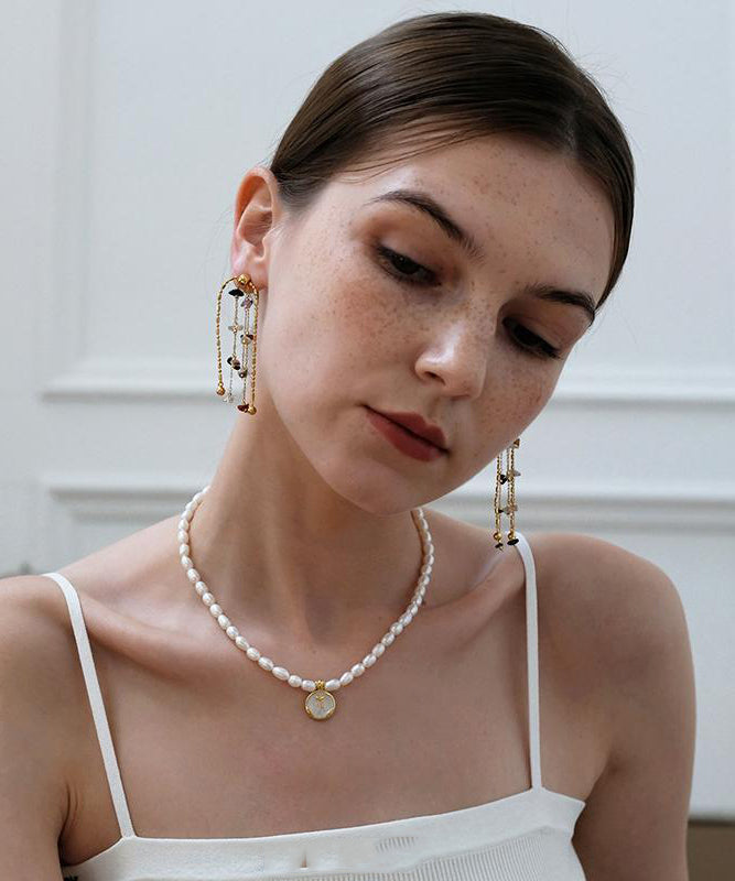 Stylish Gold Copper Rainbow Stone Tassel Drop Earrings