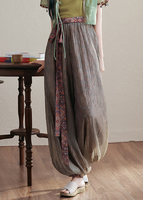 Retro Coffee Elastic Waist Ribbon Pants Fall QB019