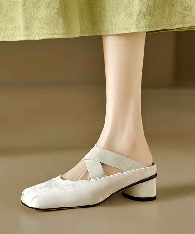 Retro Cross Strap Splicing Chunky Brown Cowhide Leather Slide Sandals RI016