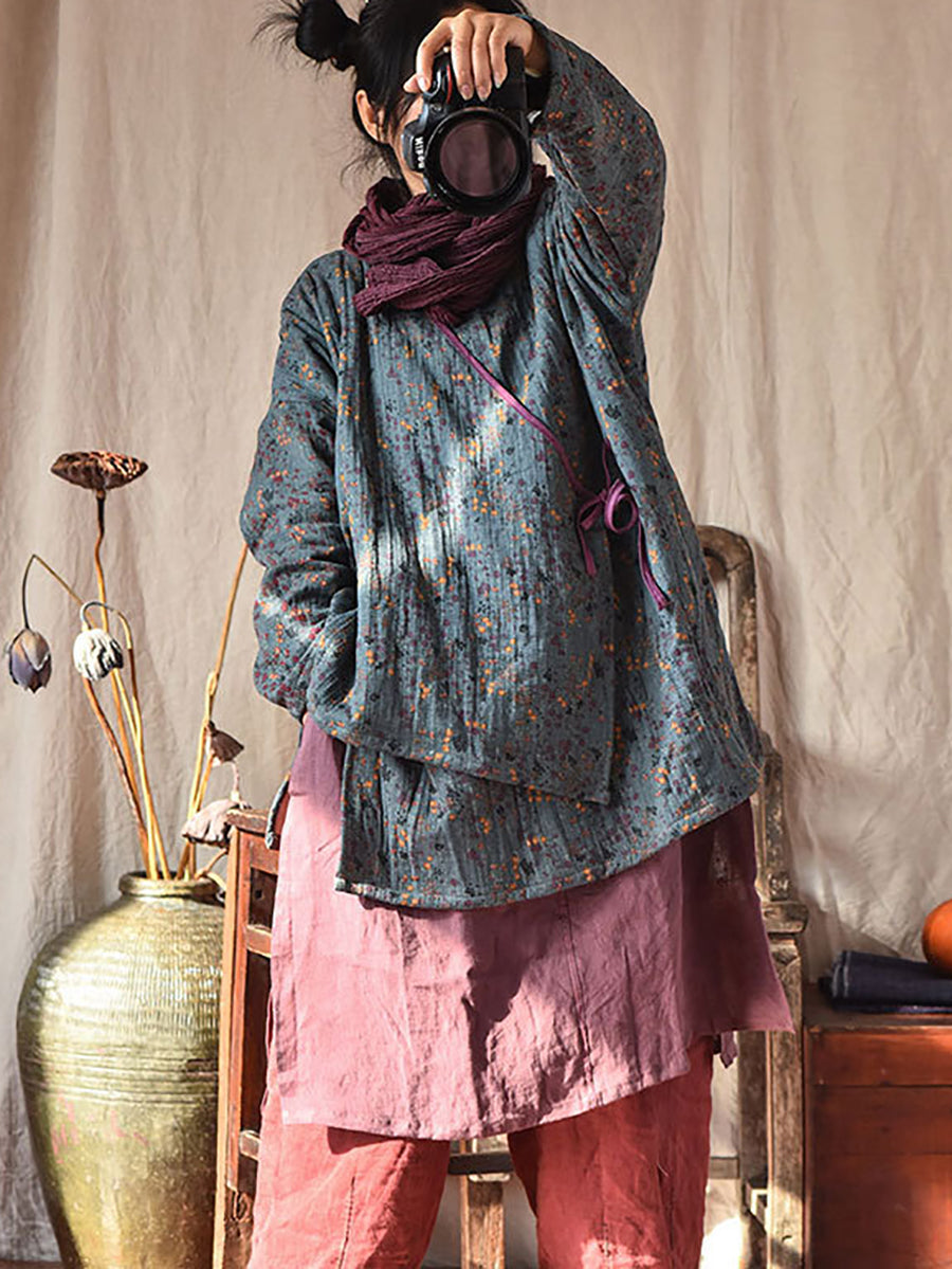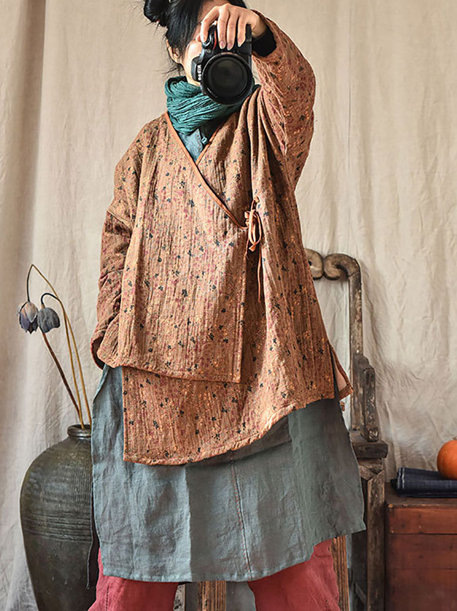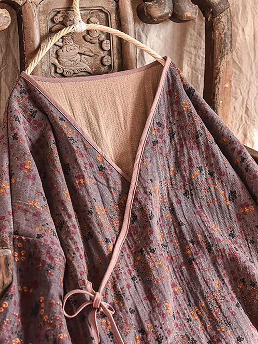 Women Retro Floral Casual Loose Irregular Hem Sweatshirt RR021