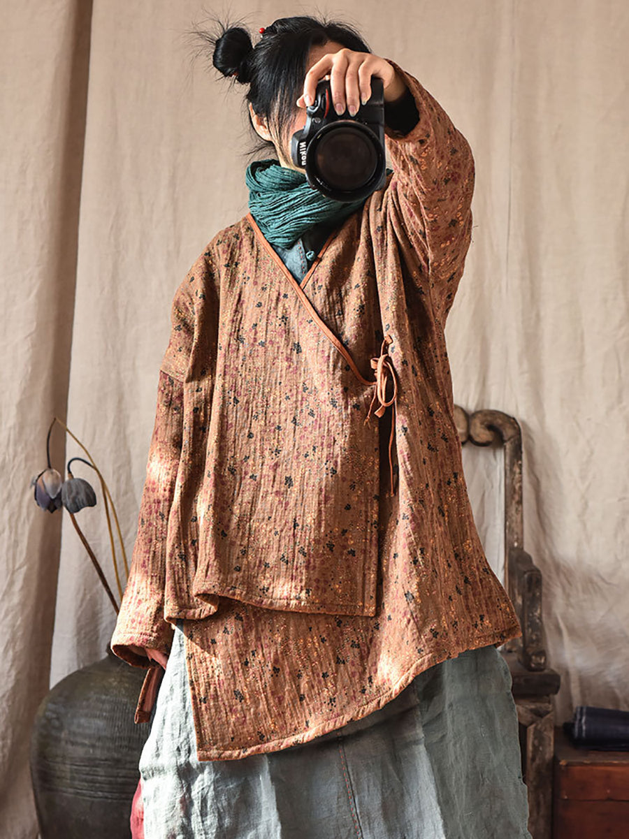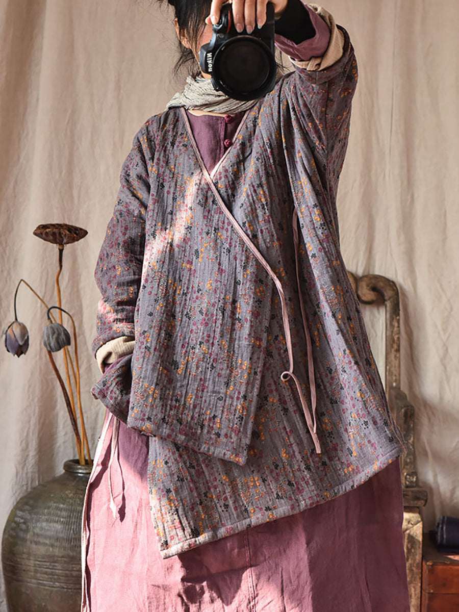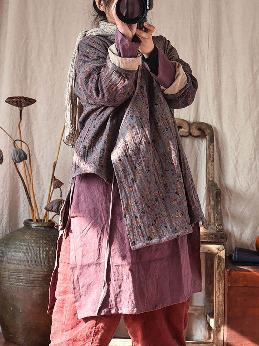 Women Retro Floral Casual Loose Irregular Hem Sweatshirt RR021