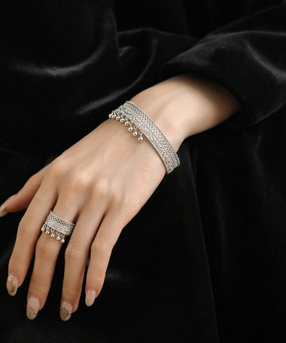 Elevate your style with the opulent Retro Gold Ancient Dharma Gold Tassel Patchwork Hollow Out Bangle - a luxurious statement piece adorned with intricate tassel details and a mesmerizing patchwork design. Exuding timeless elegance and sophistication, this bangle is a must-have for those who appreciate the finer things in life.