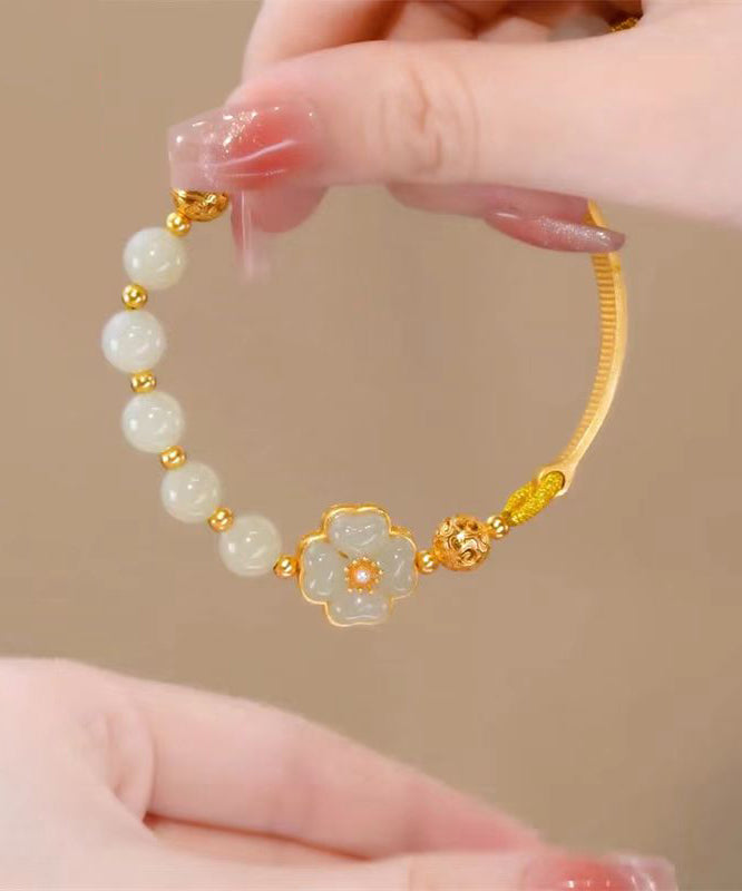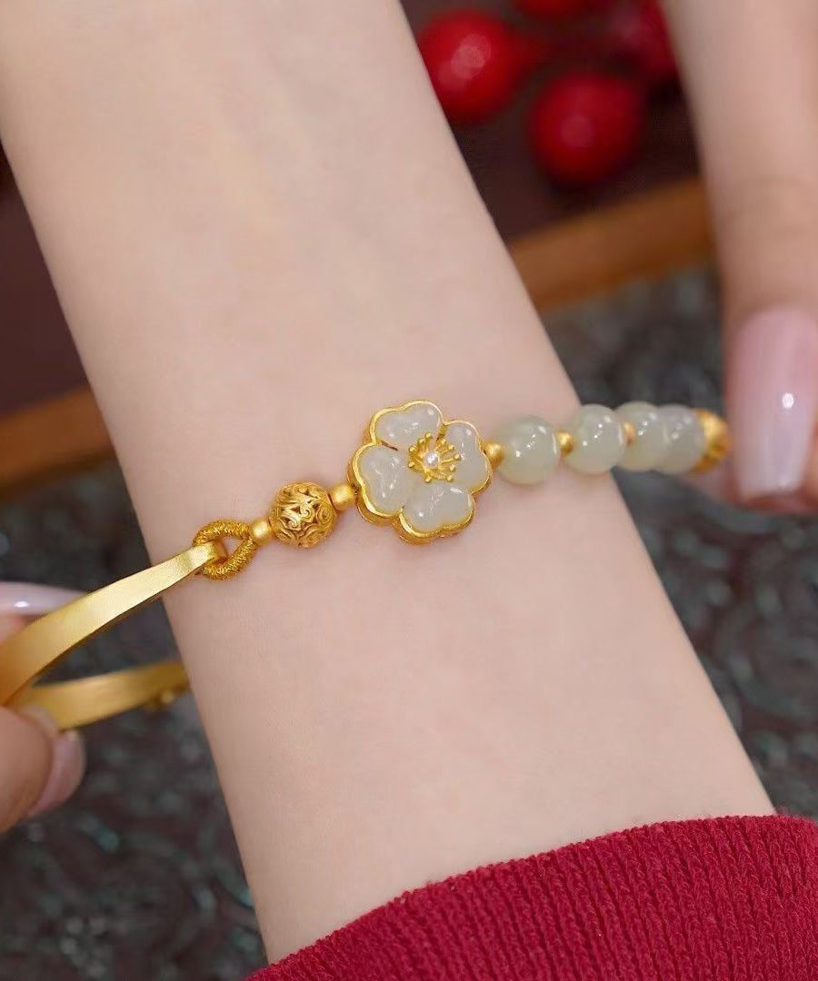 Indulge in the exquisite beauty of the Retro Light Green Sterling Silver Overgild Jade Floral Charm Bracelet. This premium piece exudes elegance with its lustrous sterling silver and delicate floral accents, making it a must-have for those with refined tastes. Elevate your style and add a touch of sophistication with this luxurious accessory.
