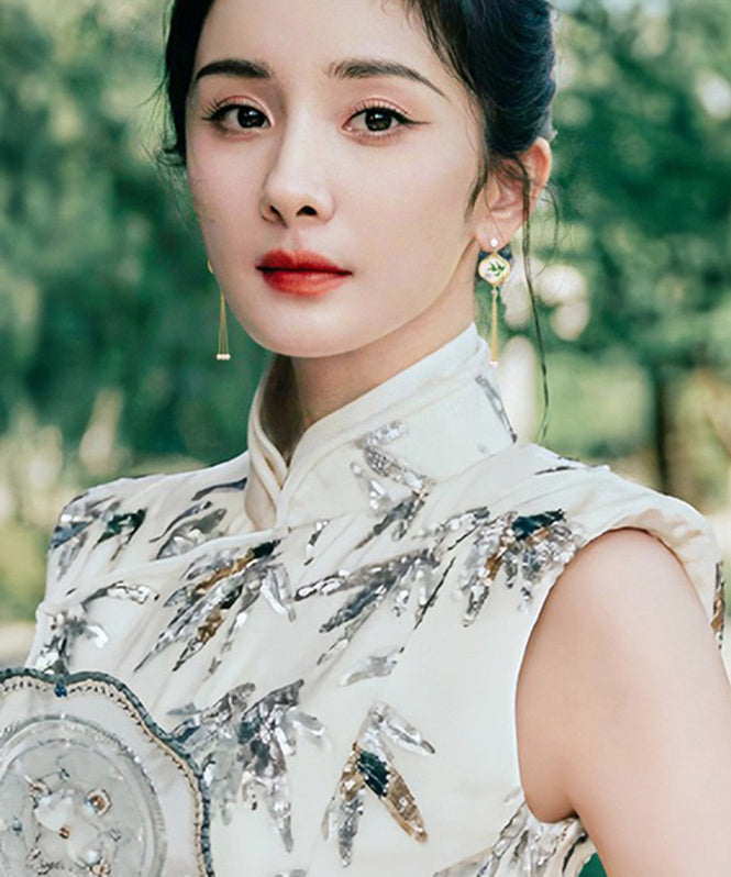 Retro Green Sterling Silver Overgild Jade Water Drop Drop Earrings LL001