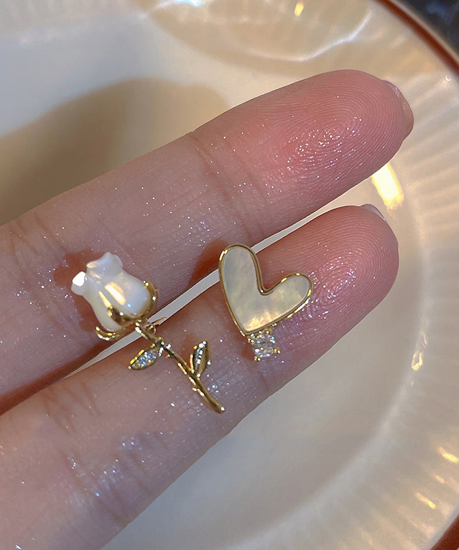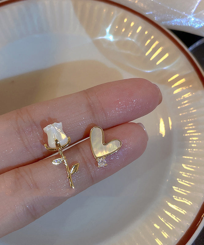 Fashion Gold Copper Overgild Asymmetrical Rose And Floral Stud Earrings