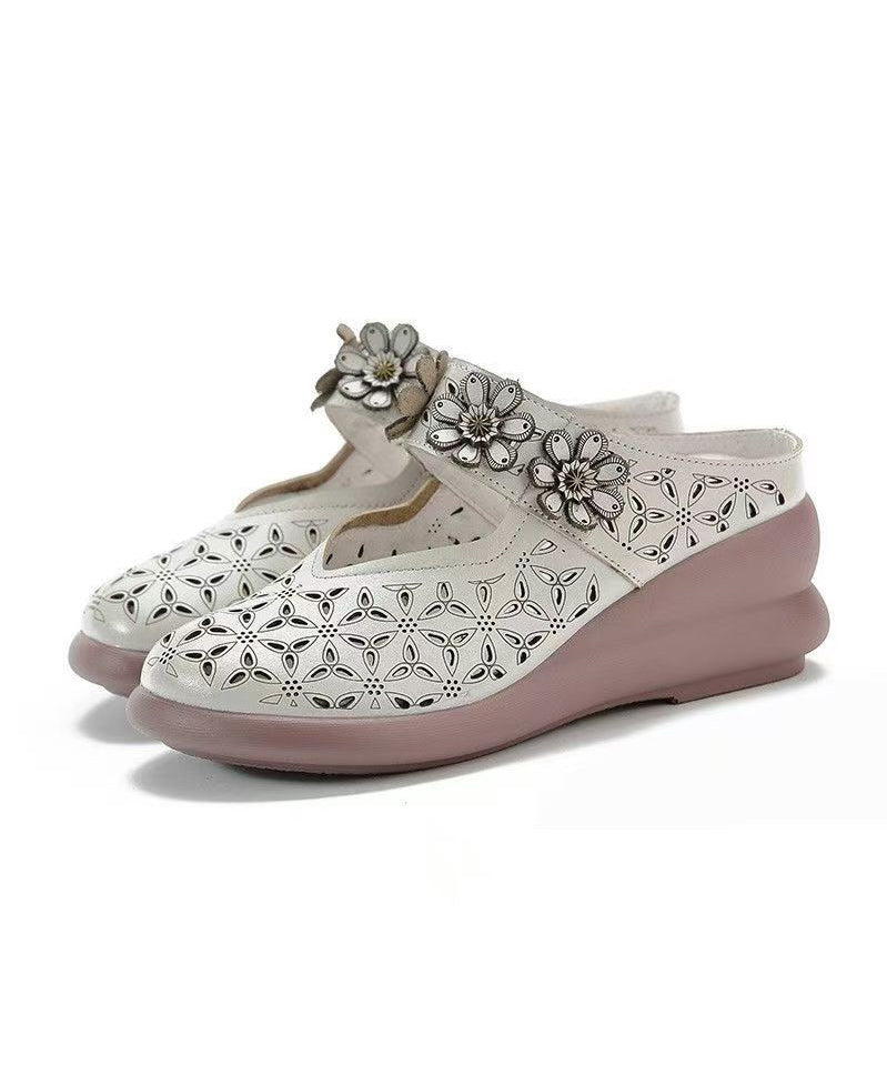 Sandals Splicing Cowhide Red New Out Hollow Slide Wedge Leather