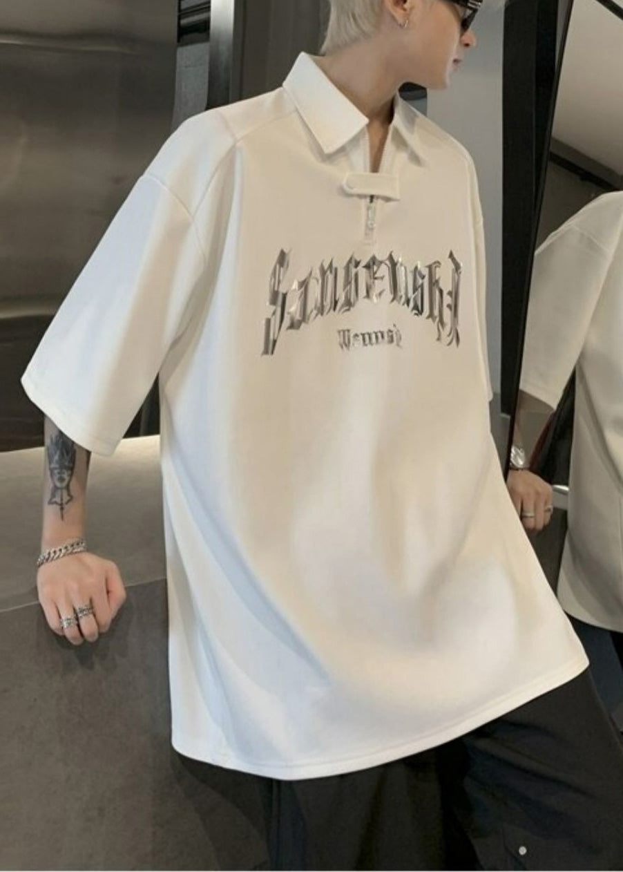 Plus Size White Sequins Letter Cotton Men Shirt And Polo Shirt Summer