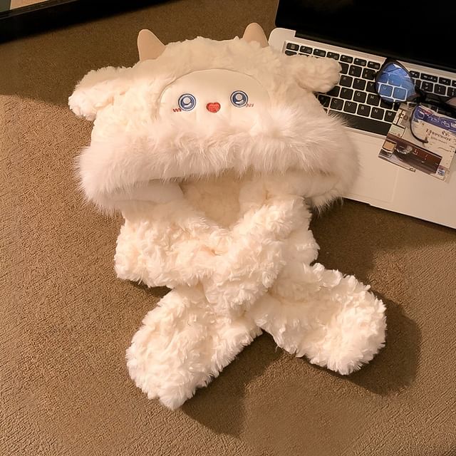 Sheep Faux Shearling Faux Fur Hooded Scarf