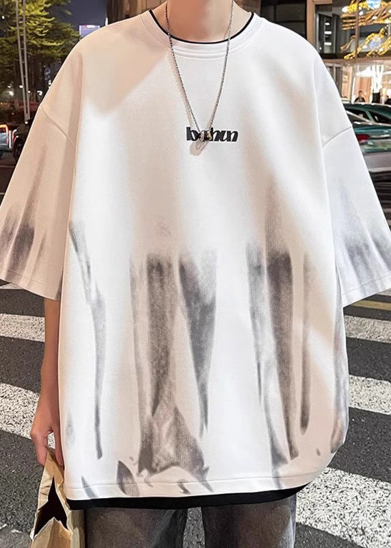 Stylish Green Tie Dye Patchwork Cotton Mens T Shirts Half Sleeve
