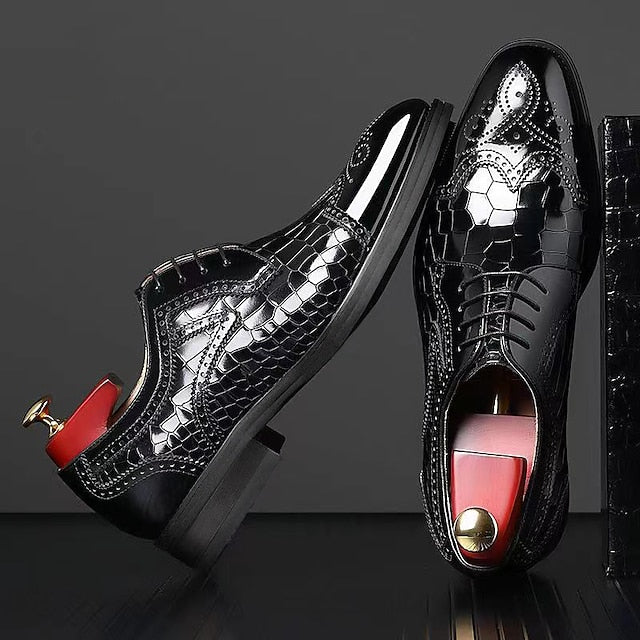 Men's Burgundy Patent Leather Oxford Shoes with Brogue