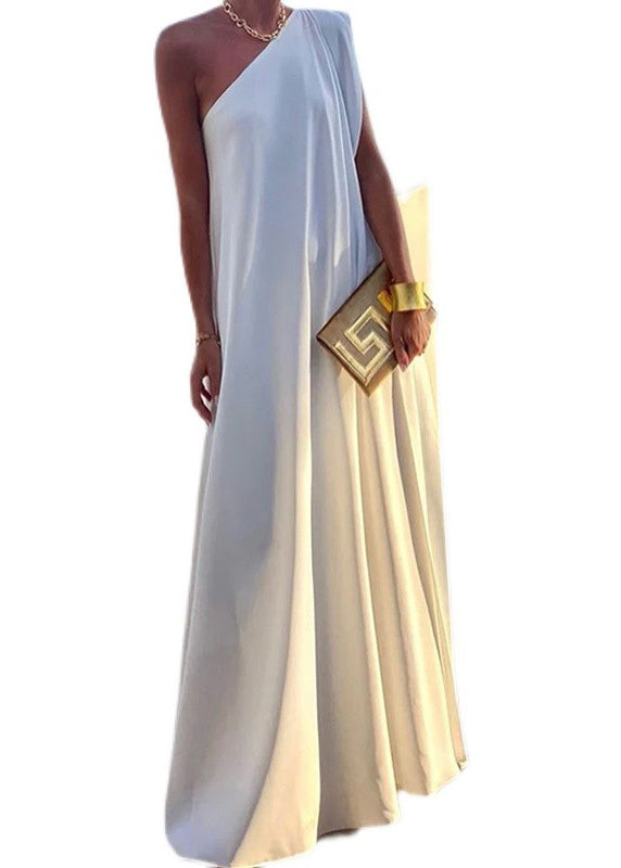 Style Black One Shoulder Cotton Long Party Dresses Summer
