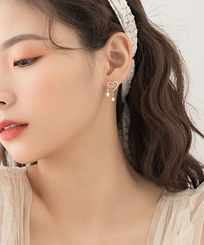 Beautiful Silk Sterling Silver Zircon Star Love Tasses Drop Earrings