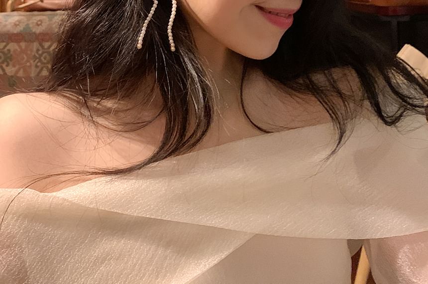 Cute Pink Crystal Pearl Tulle Floral Tassel Drop Earrings LL007