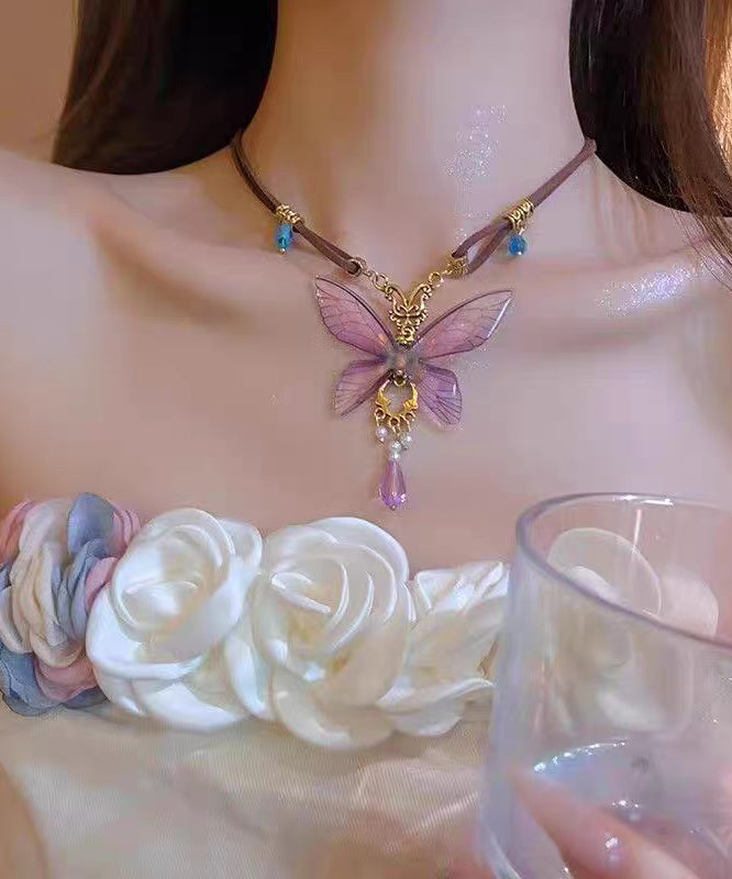 Novelty Purple Sterling Silver Overgild Butterfly Pearl Pendant Necklace