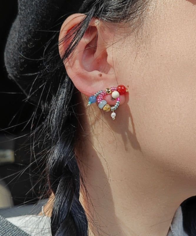 Chic Rainbow Sterling Silver Overgild Jade Agate Bow Stud Earrings