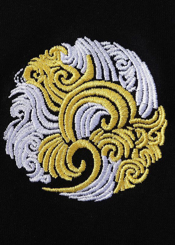 Simple Black Embroideried Solid Cotton Men T Shirt Summer LK061