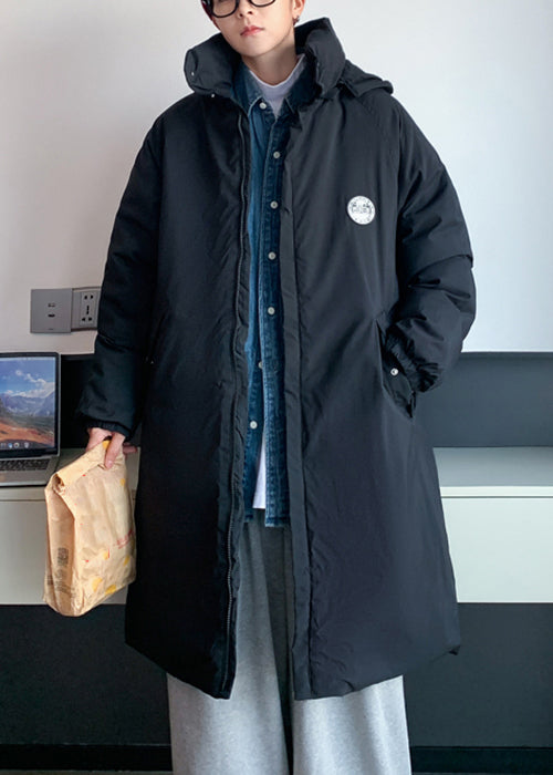 Simple Black Hooded Pockets Solid Coats Men Parkas WinterRM018