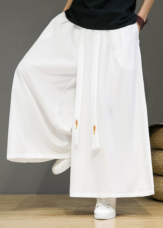 Simple Black Pockets Elastic Waist Cotton Mens Wide Leg Pants Summer SA034