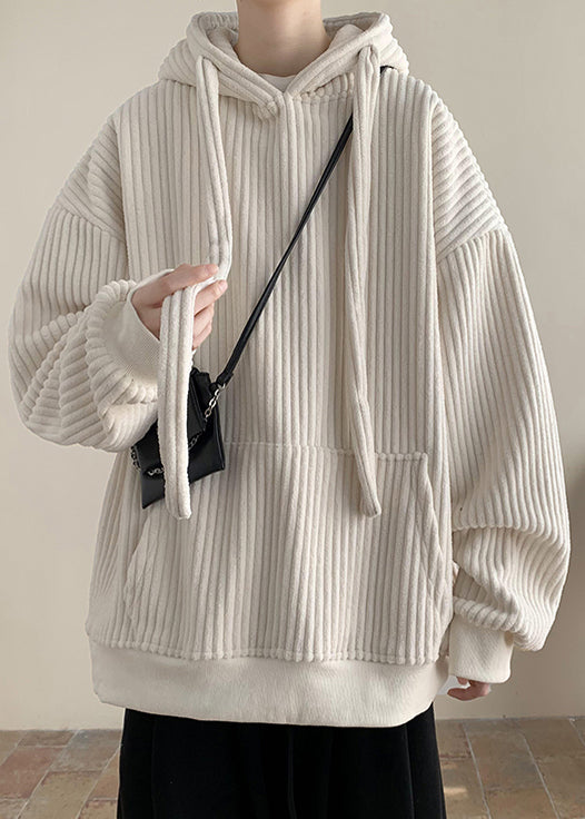 Indulge in the opulence of our Simple Grey Hooded Pockets Thick Corduroy Men's Sweatshirts, perfect for the luxurious winter season.