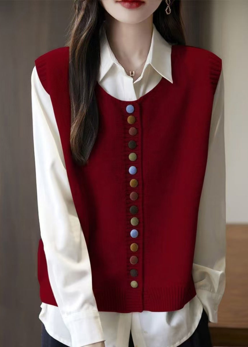 Elevate your wardrobe with our sophisticated Simple Grey O Neck Knit Vest, featuring delicate buttons and a sleeveless design. Perfect for layering or wearing on its own, this vest adds a touch of elegance to any outfit.