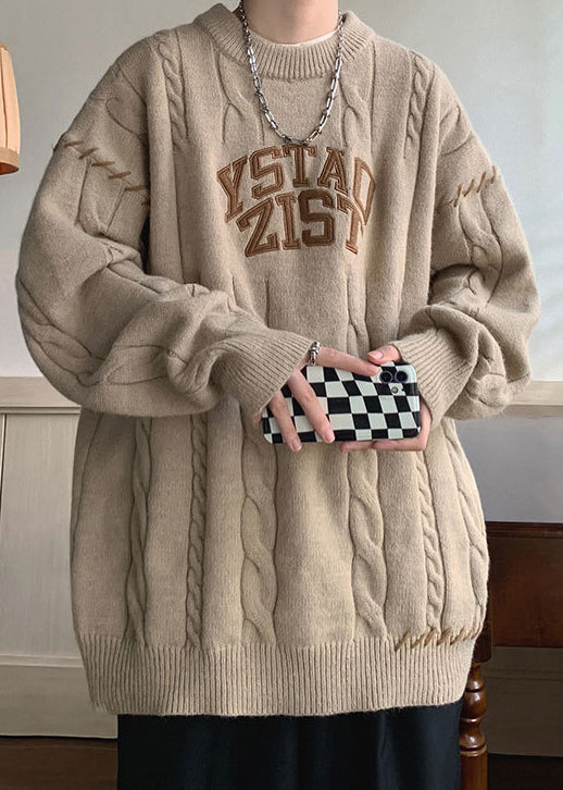 Simple Khaki O Neck Letter Cotton Knit Mens Sweaters Winter QF031