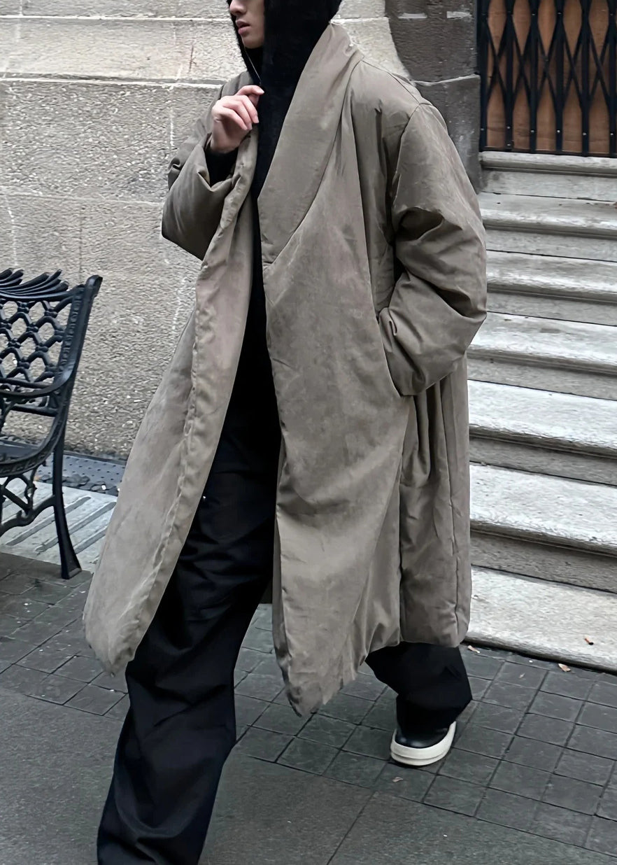 Luxurious Khaki Pockets Solid Duck Down Men's Down Coat for Winter.