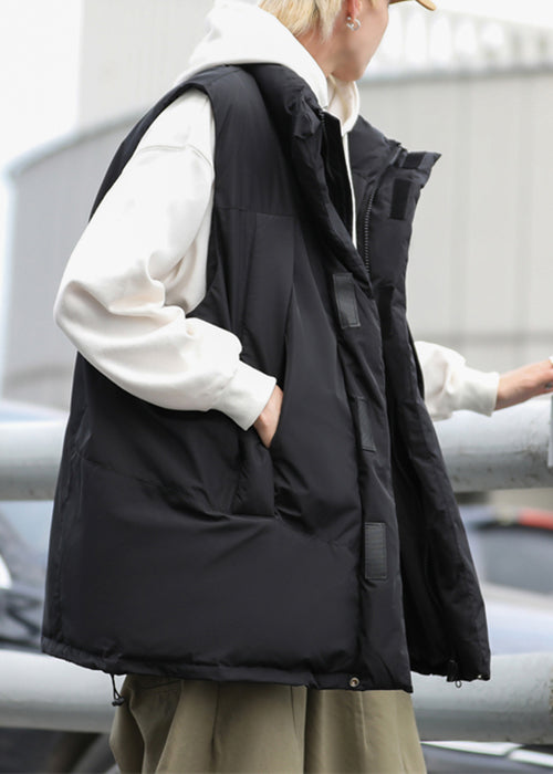 Simple Khaki Stand Collar Zip Up Cotton Filled Men Waistcoat Winter EQ035