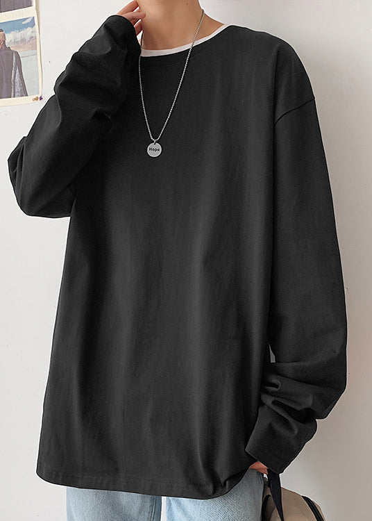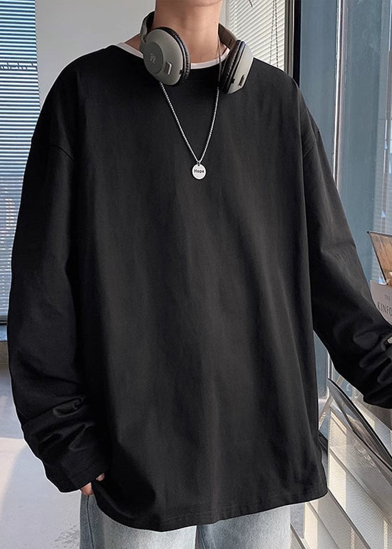 Simple Versatile White O Neck Cotton Mens T Shirts Fall EQ019