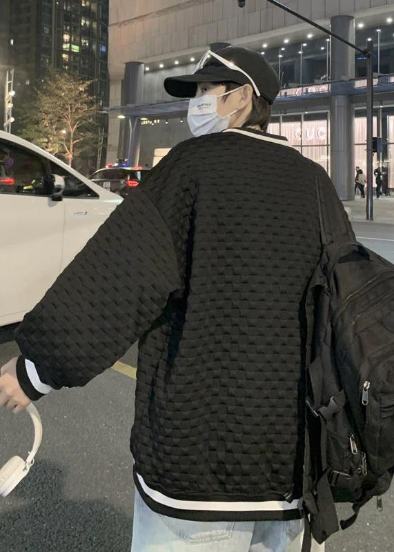 Simple White O Neck Patchwork Cotton Mens Sweatshirts Top Fall EQ040