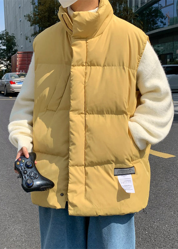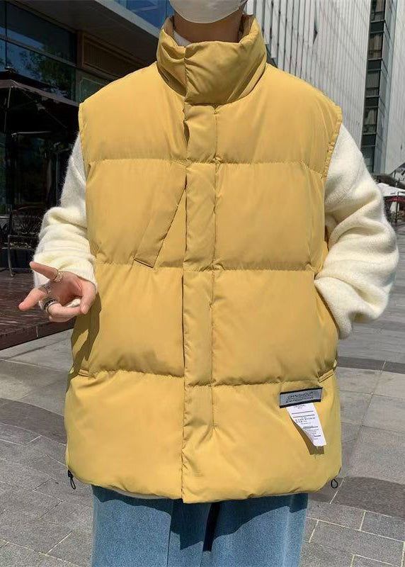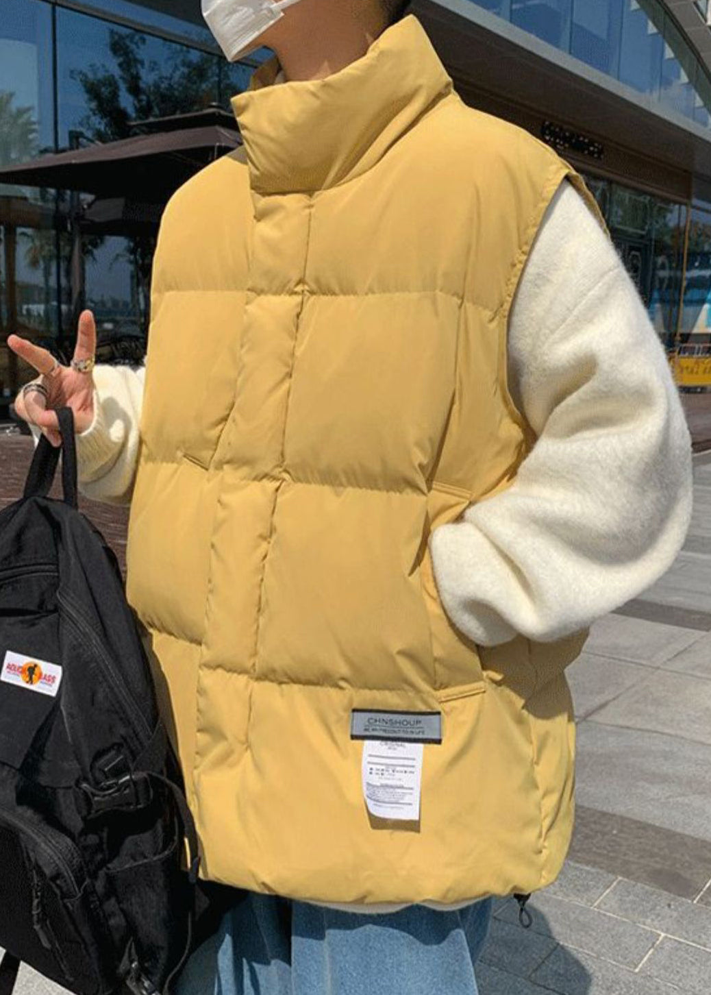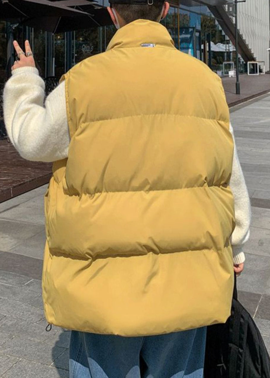 Simple Yellow Zippered Pockets Cotton Filled Mens Waistcoat Sleeveless EQ022