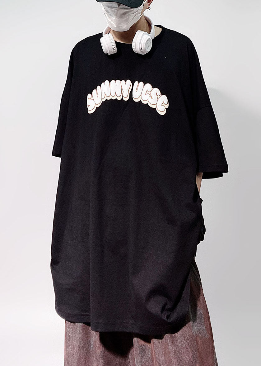 Loose Blue Floral Letter Cotton Men's T Shirts Half Sleeve