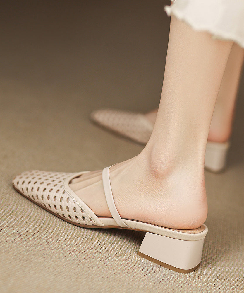 Slide Chunky Boutique Black Out Hollow Sandals Splicing