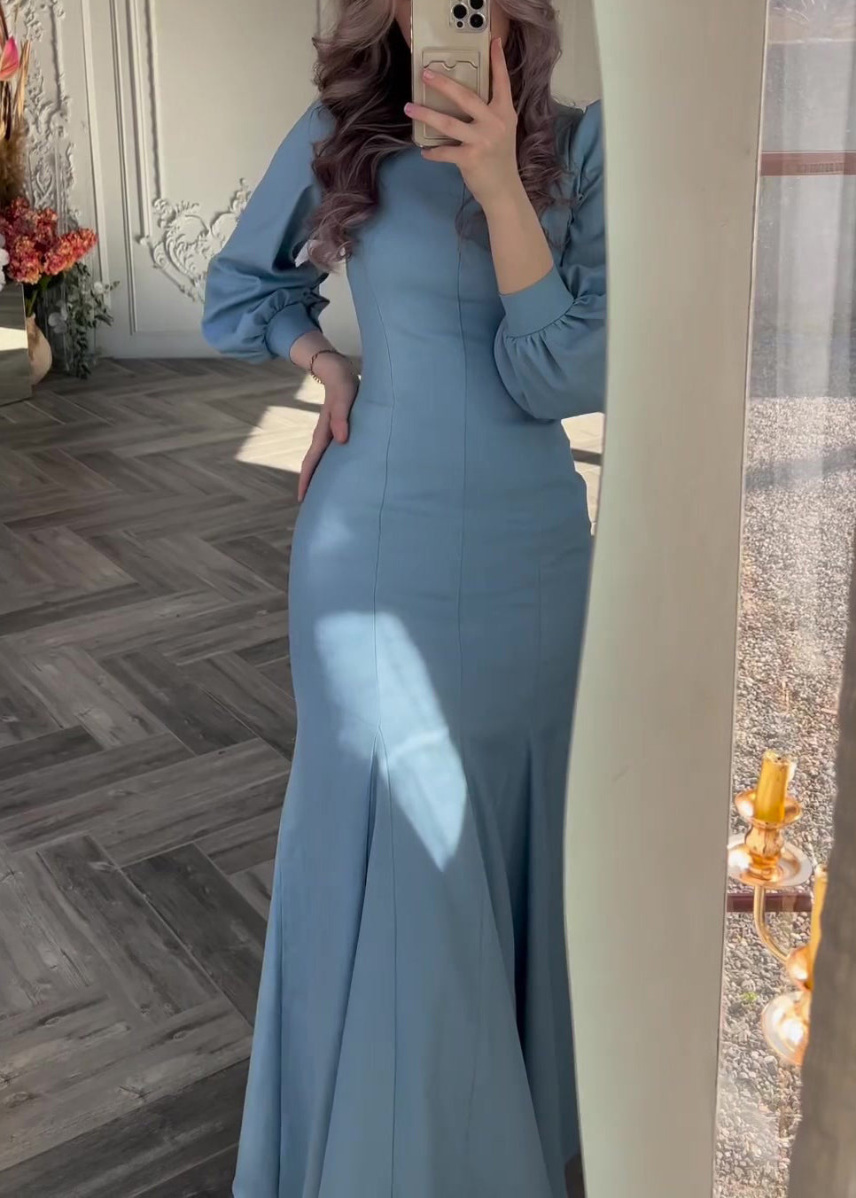 Slim Fit Blue Original Design Solid Cotton Dress Fall QL009
