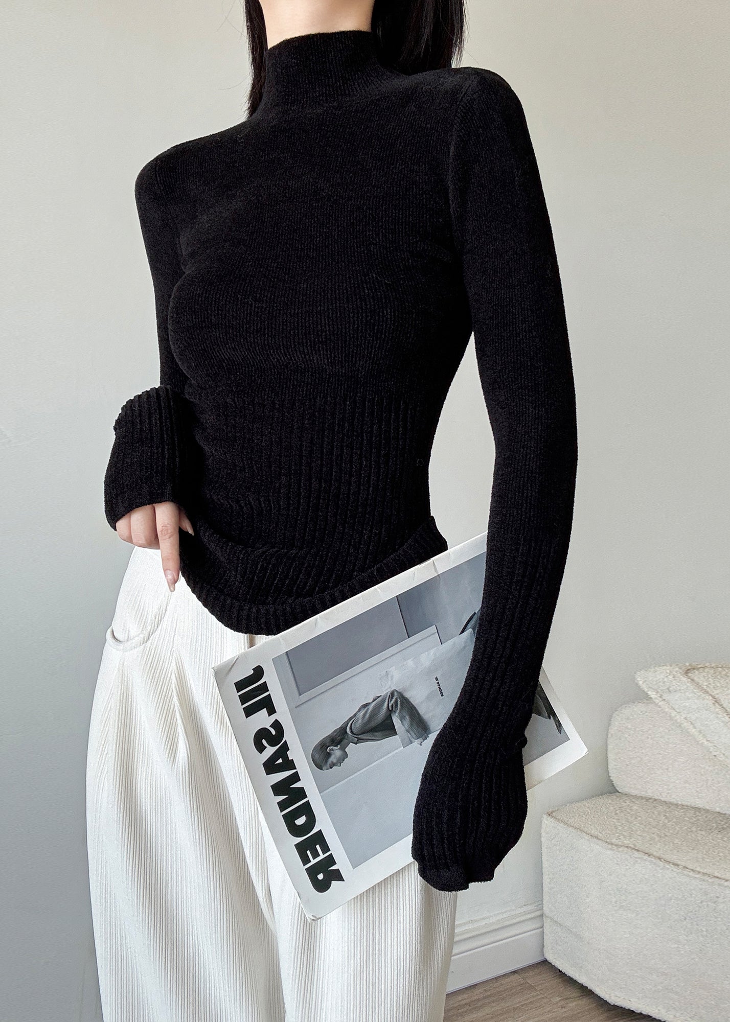 Slim Fit Brown Hign Neck Patchwork Knit Sweaters Winter RV039