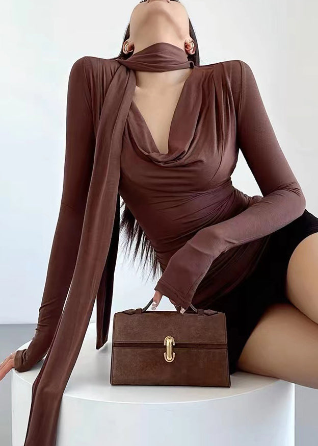 Elevate your wardrobe with our Slim Fit Brown Turtle Neck Solid Cotton T Shirt for Fall. Its slim fit design and luxurious cotton material provide both style and comfort. Perfect for any occasion, this shirt brings a touch of sophistication to your look. Upgrade your wardrobe now.