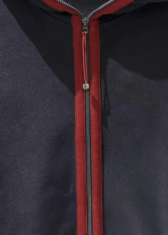 Slim Fit Navy Hooded Zip Up Cotton Coat Fall RK021
