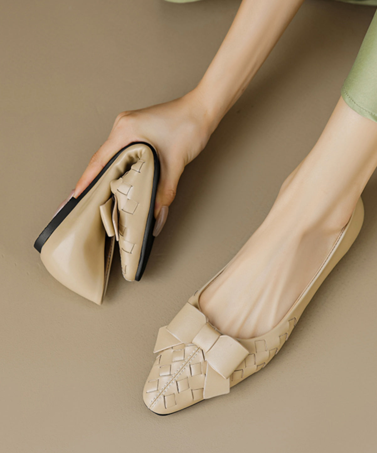 Soft Bow Sheepskin Splicing Chic Flats Black Comfy