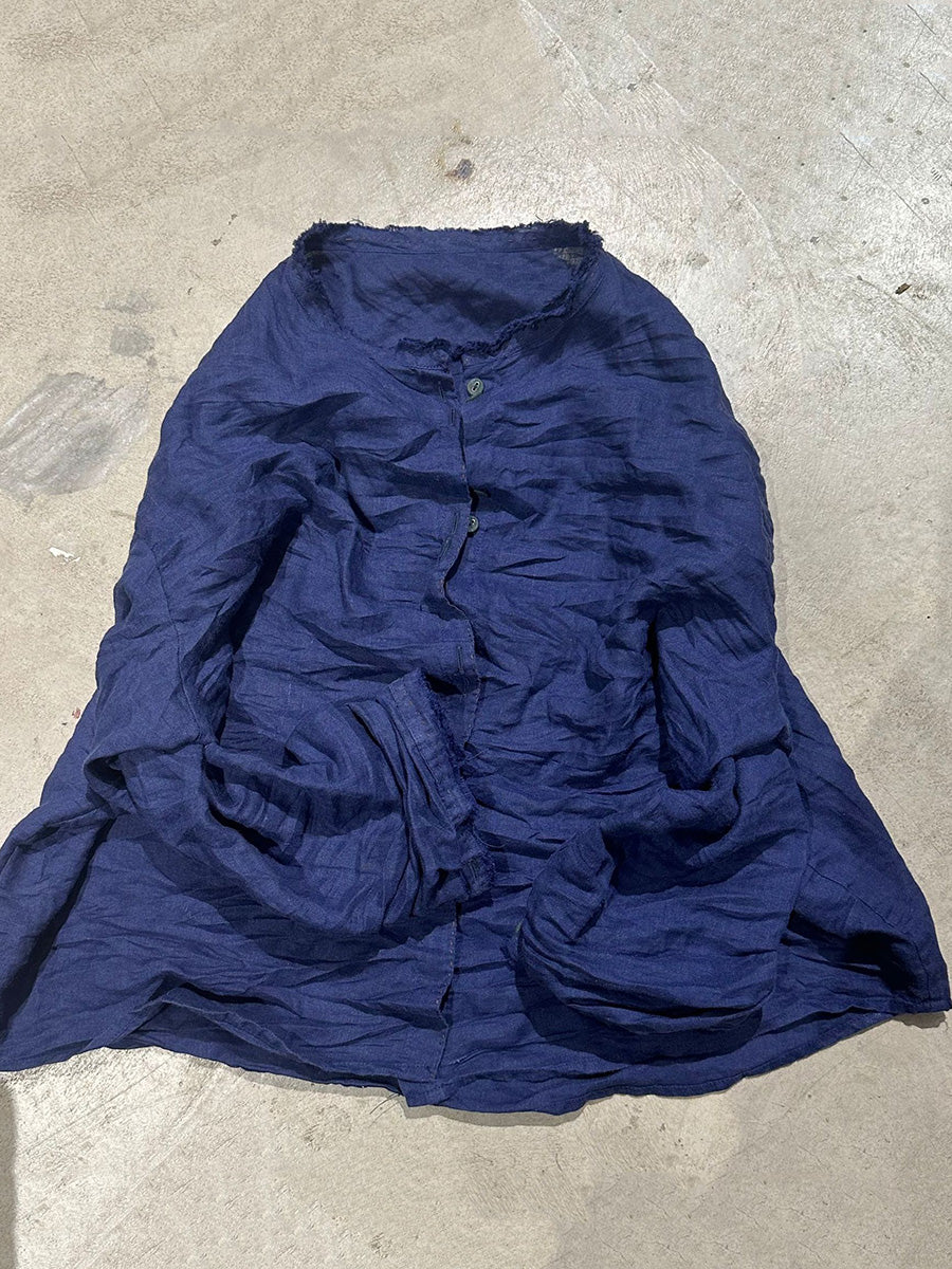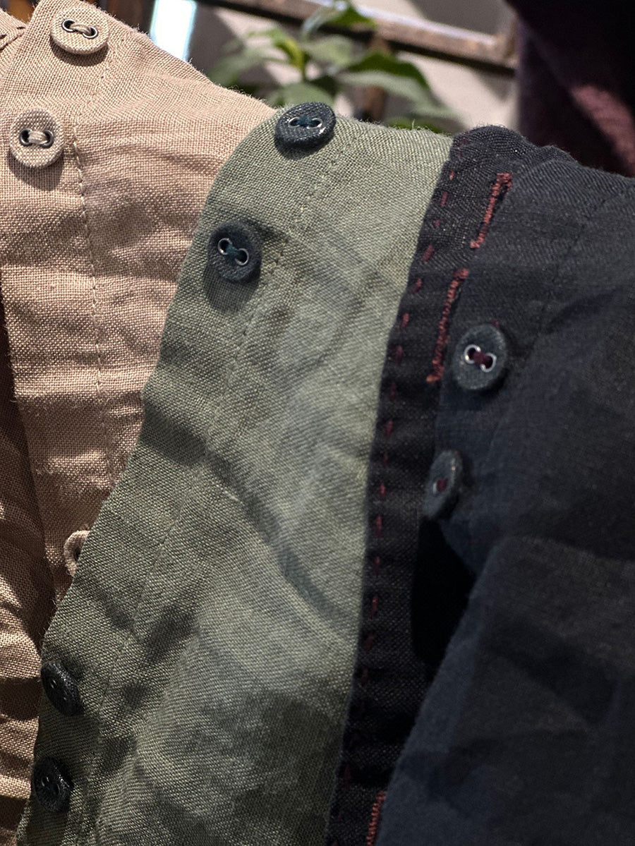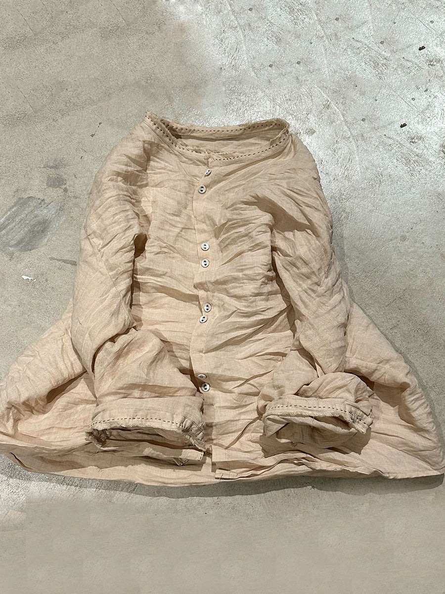 Solid Loose Women Blouse Vintage Collar Stand Ramie