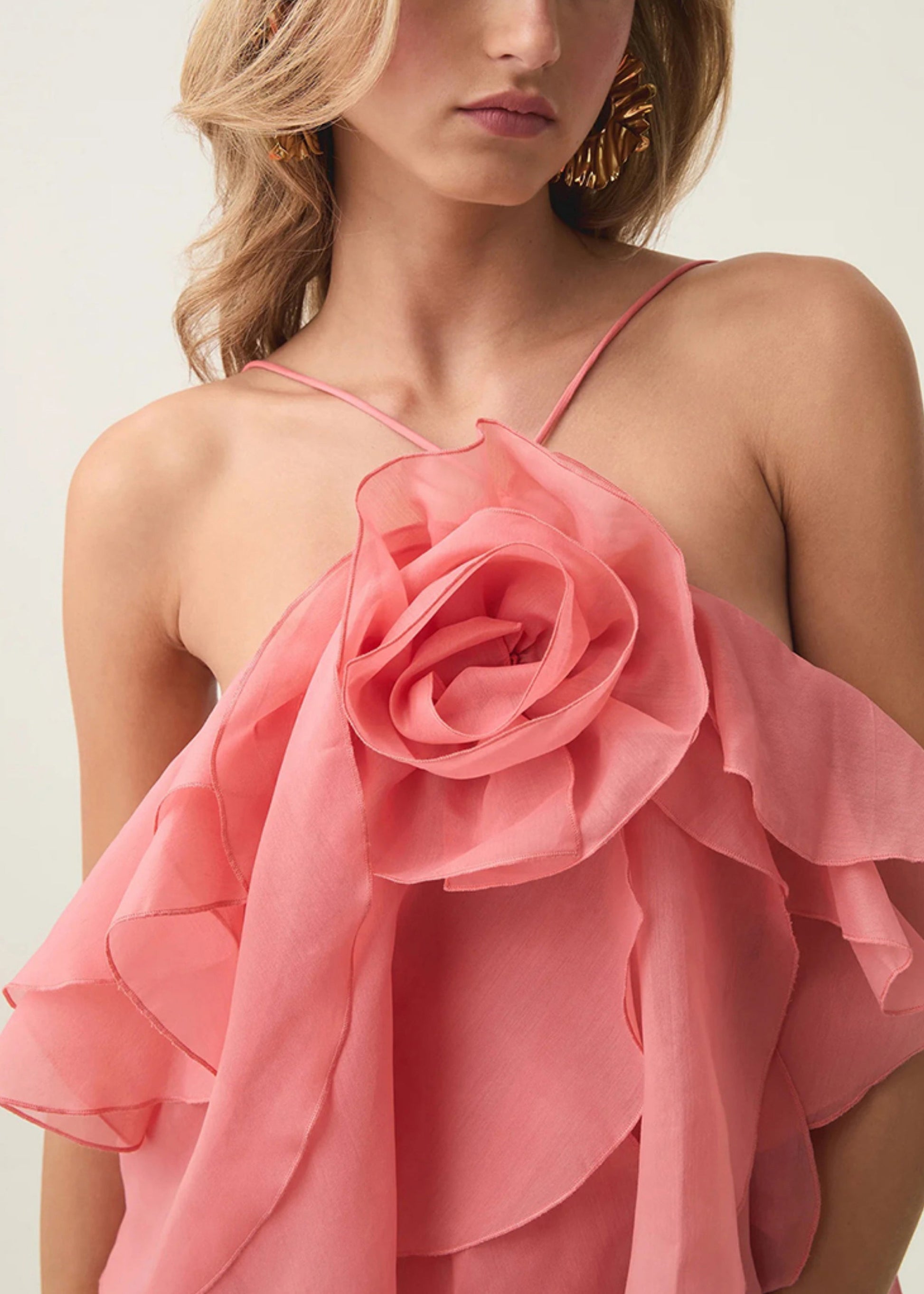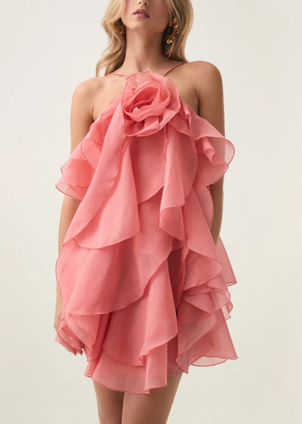 Orange Floral Cotton Sleeveless Spaghetti Strap Dress Cold Shoulder