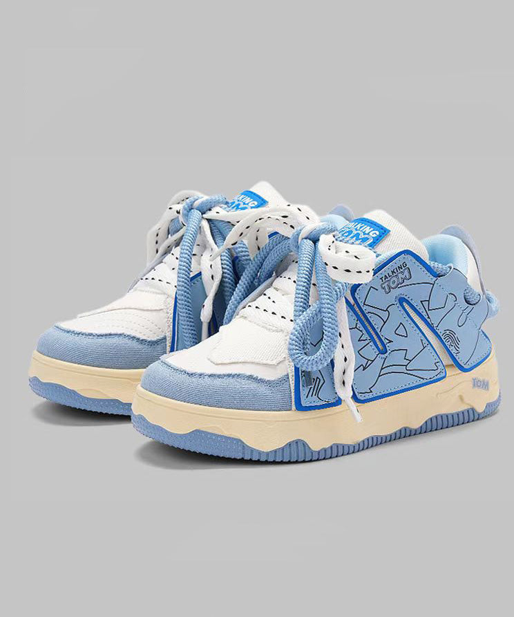 New Fashion Black Lace Up Splicing Platform Flat Shoes
