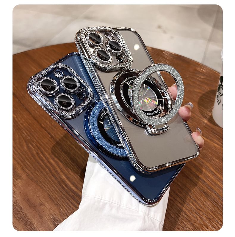 Stand Phone with Magnetic Transparent MagSafe) Case Rhinestone (Compatible