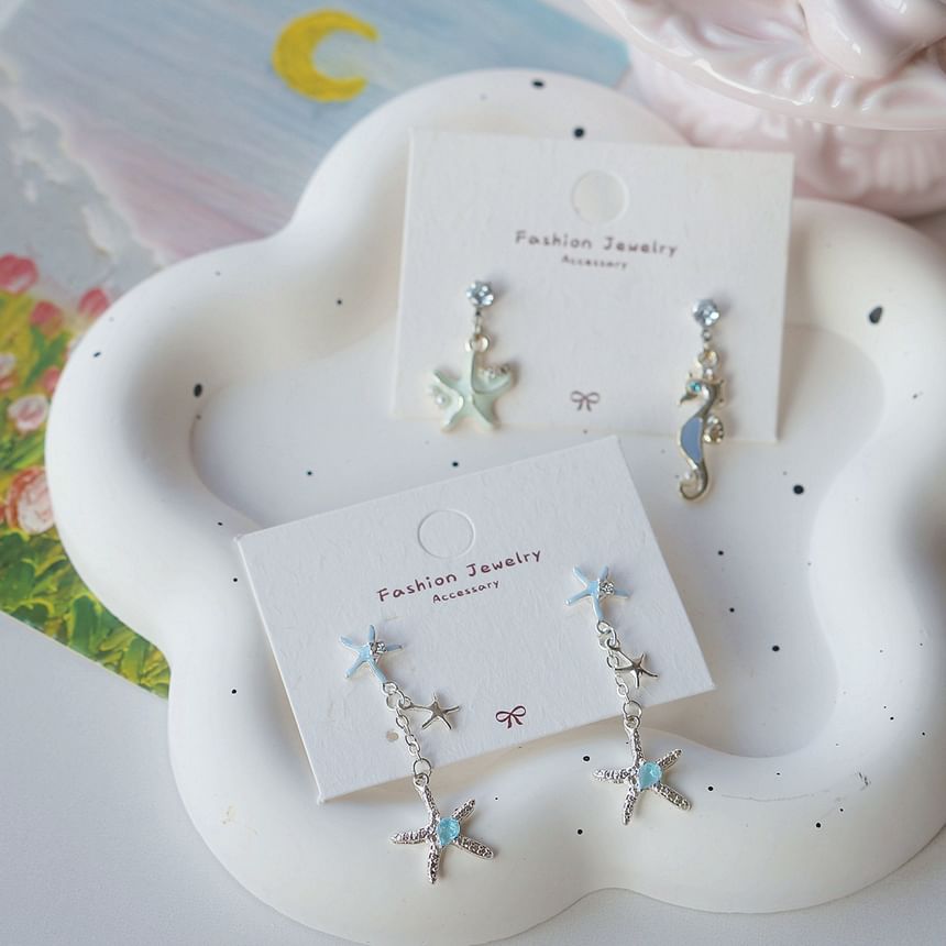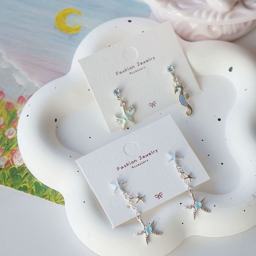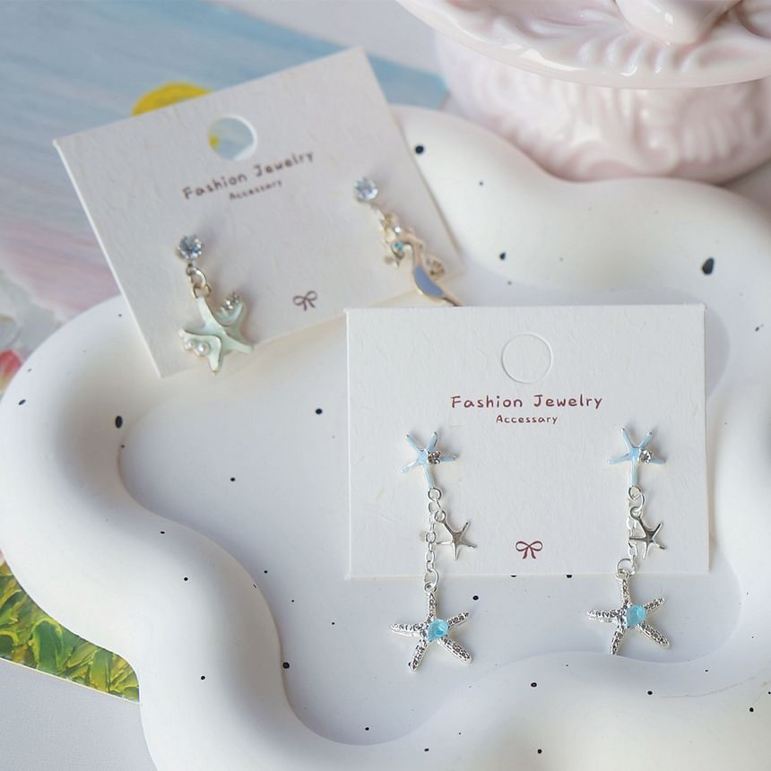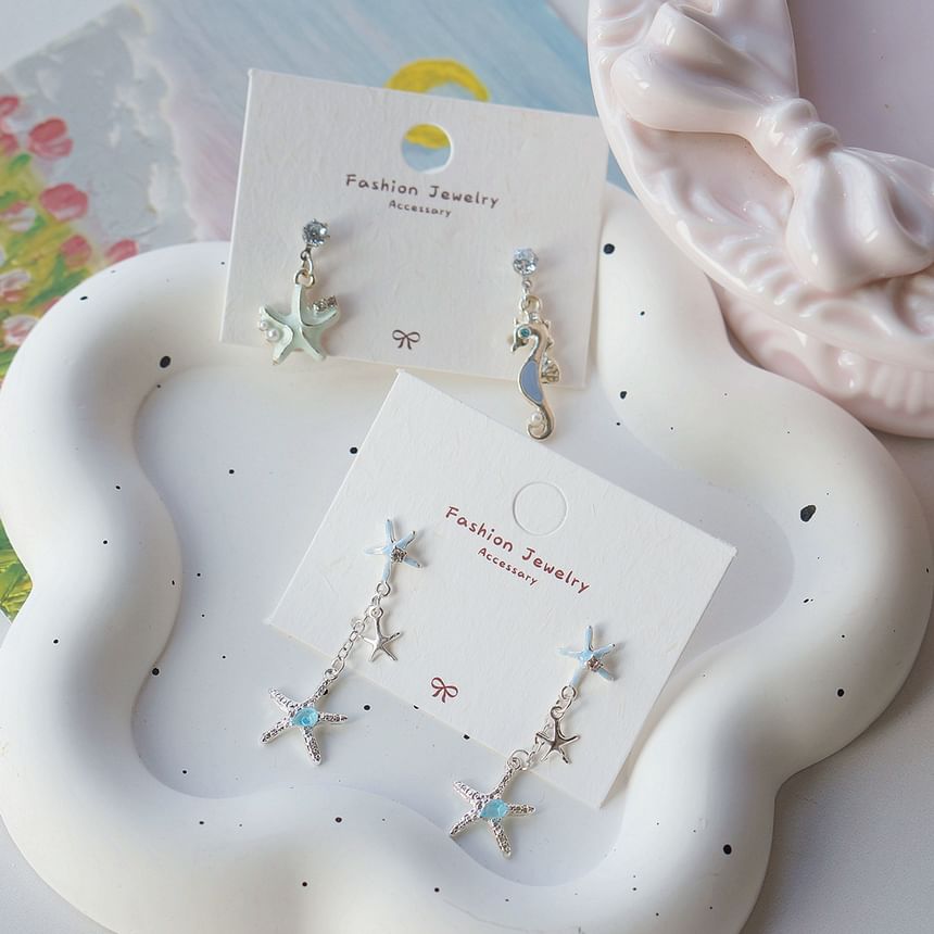 | Color: | Starfish - 1 Pair - Stud Earrings - Gold & Blue |