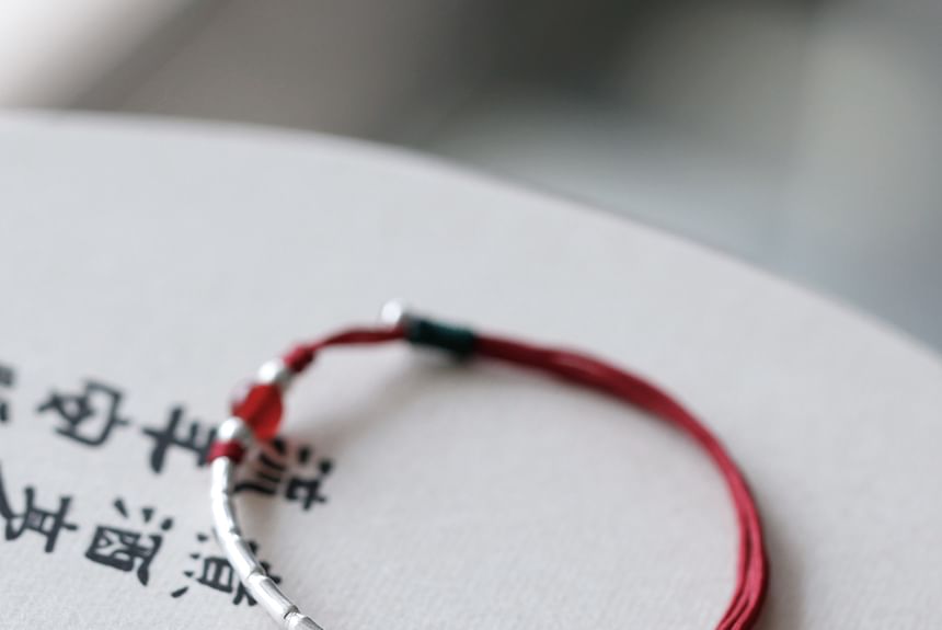 Agate Bead Sterling Silver String Bracelet