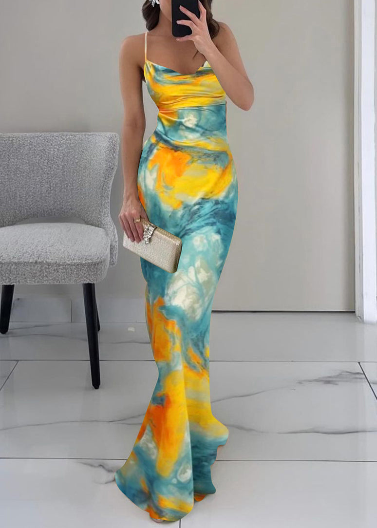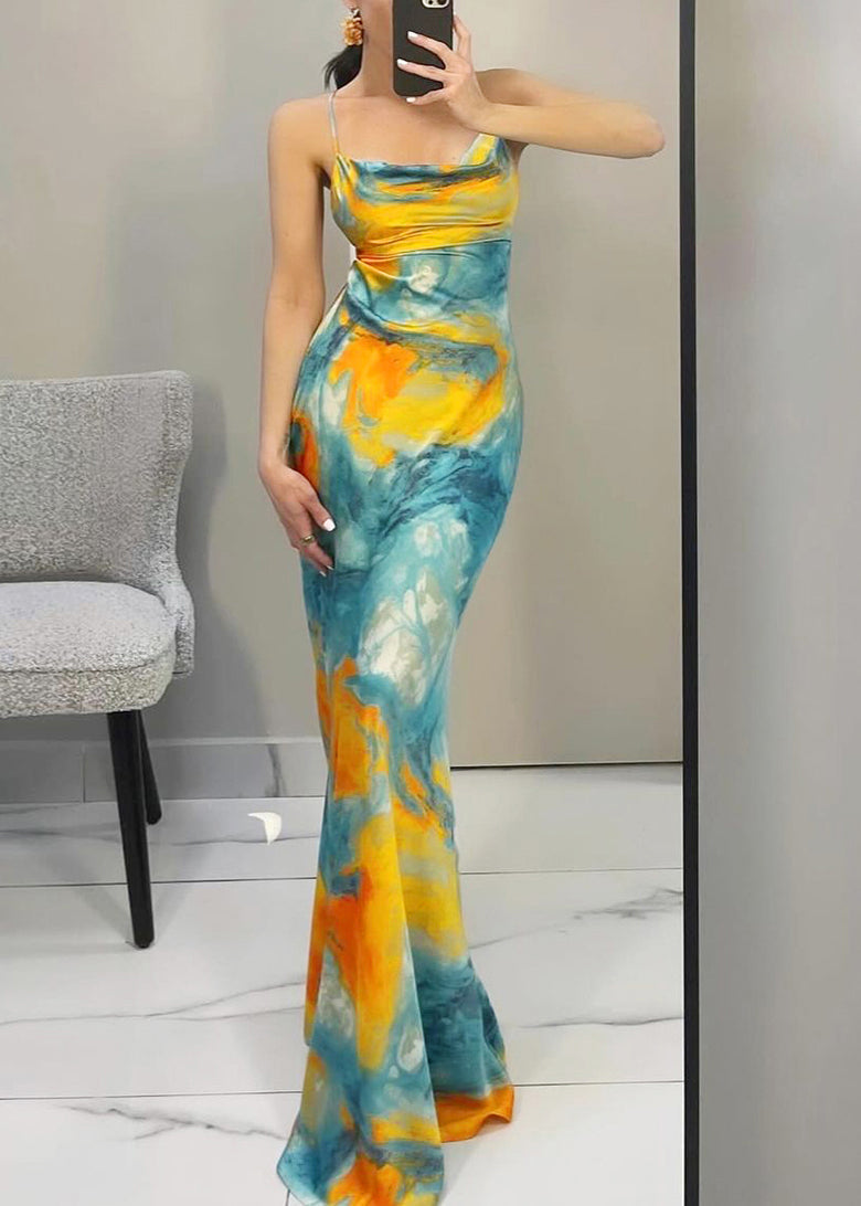 Blue Lace Up Spaghetti Strap Dress Backless Sleeveless