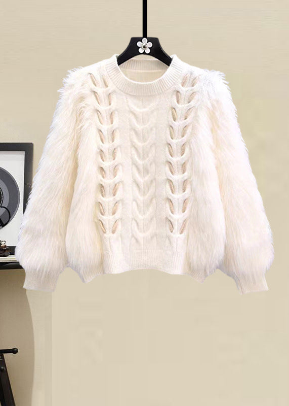 Style Apricot O Neck Sweaters And Skirts Knit Two Pieces Set Fall WV021