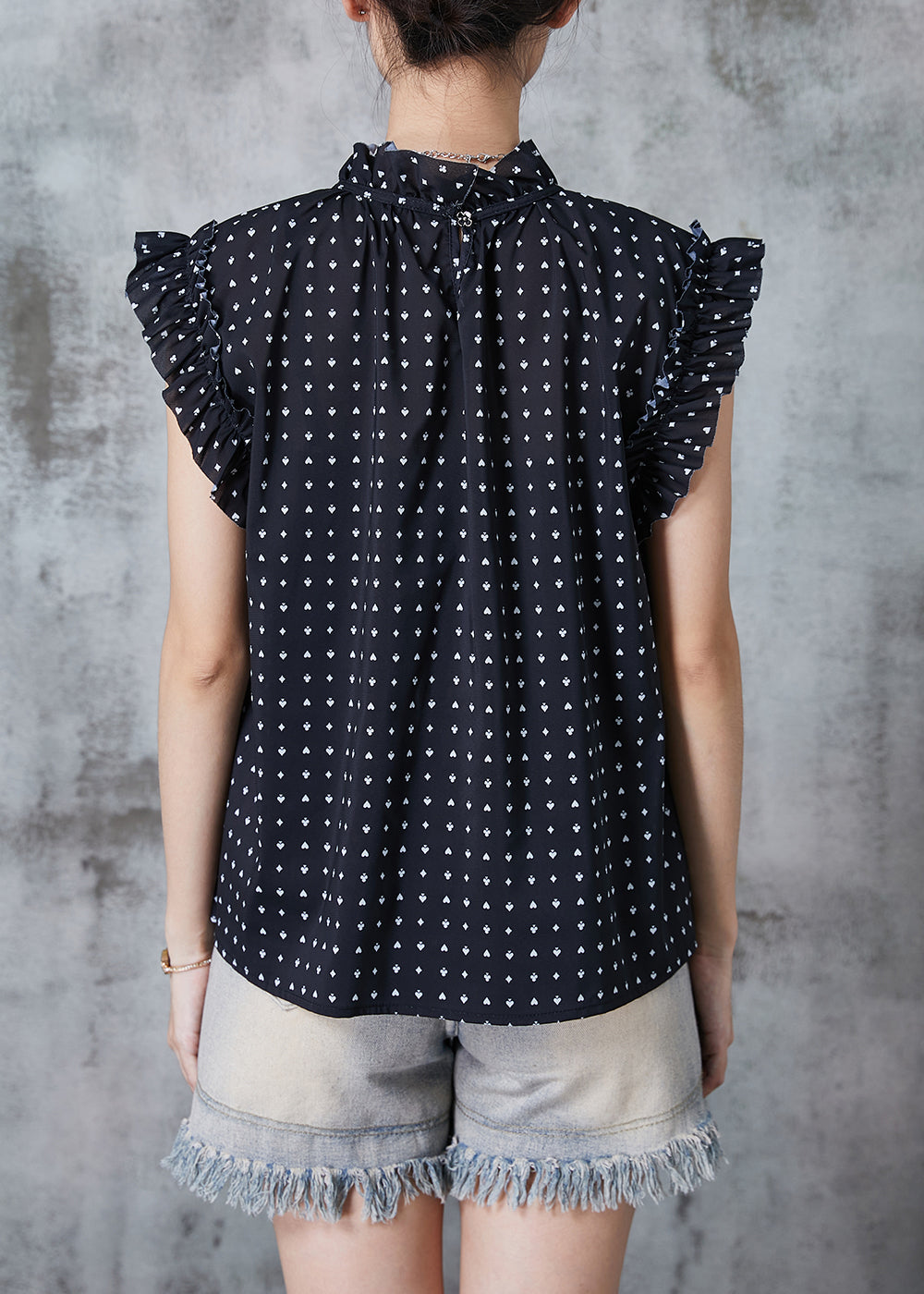 Style Black Ruffled Print Chiffon Tops Summer QA1010