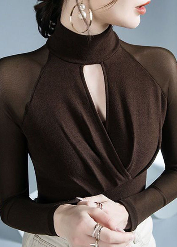 Style Sexy Green Hign Neck Patchwork Tulle Blouse Top Fall AL1081