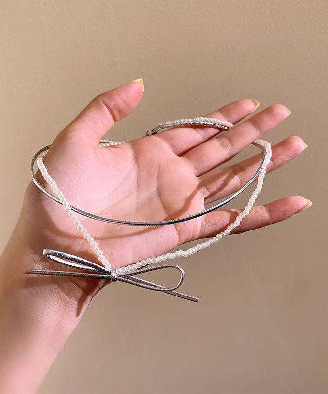 Style Silk Copper Portex Pearl Bow Pendant Necklace YR014
